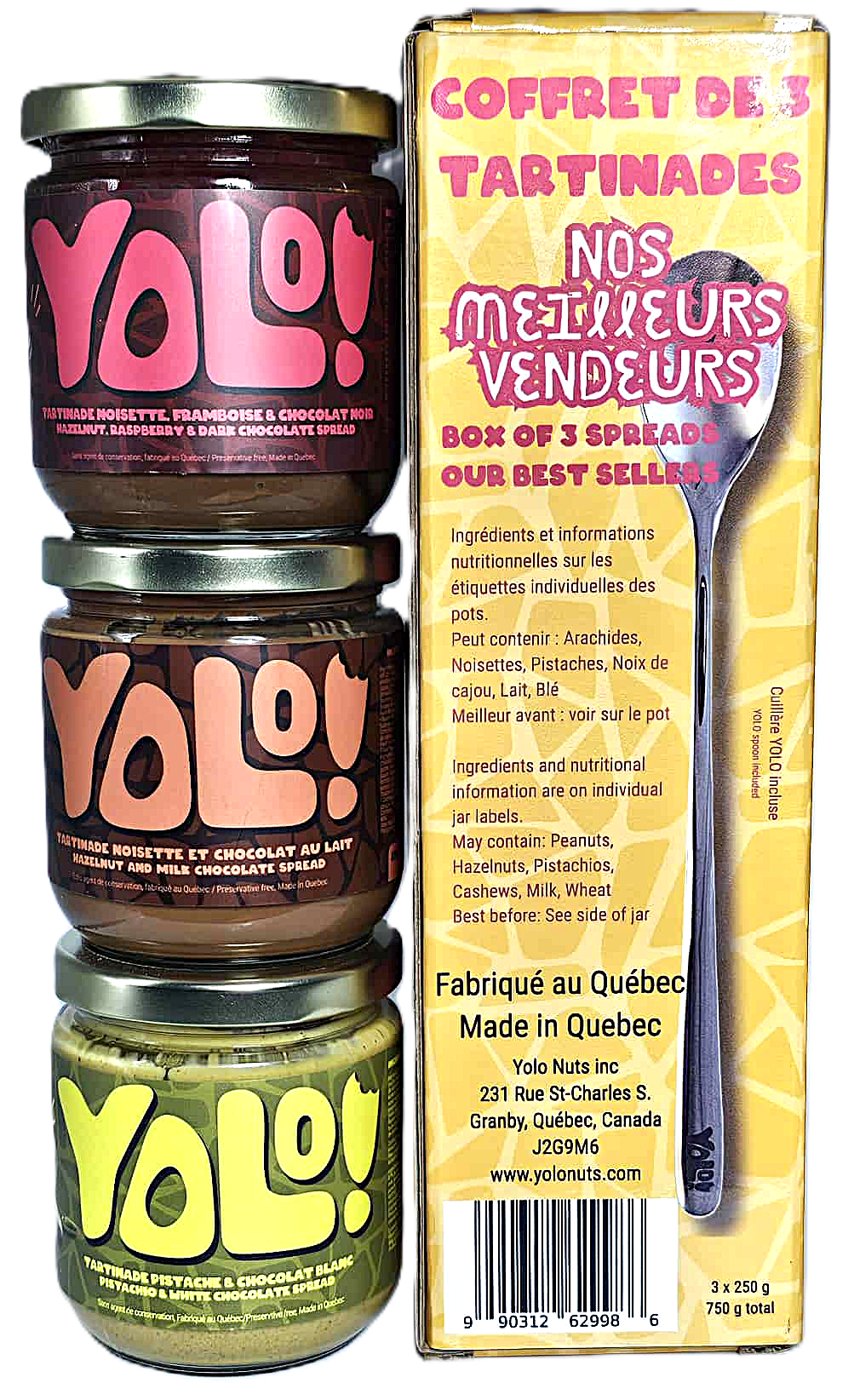 Faites plaisir à vos papilles ou surprenez un proche avec ce coffret gourmand signé YOLO Nuts — le goût du bonheur, à chaque cuillère !